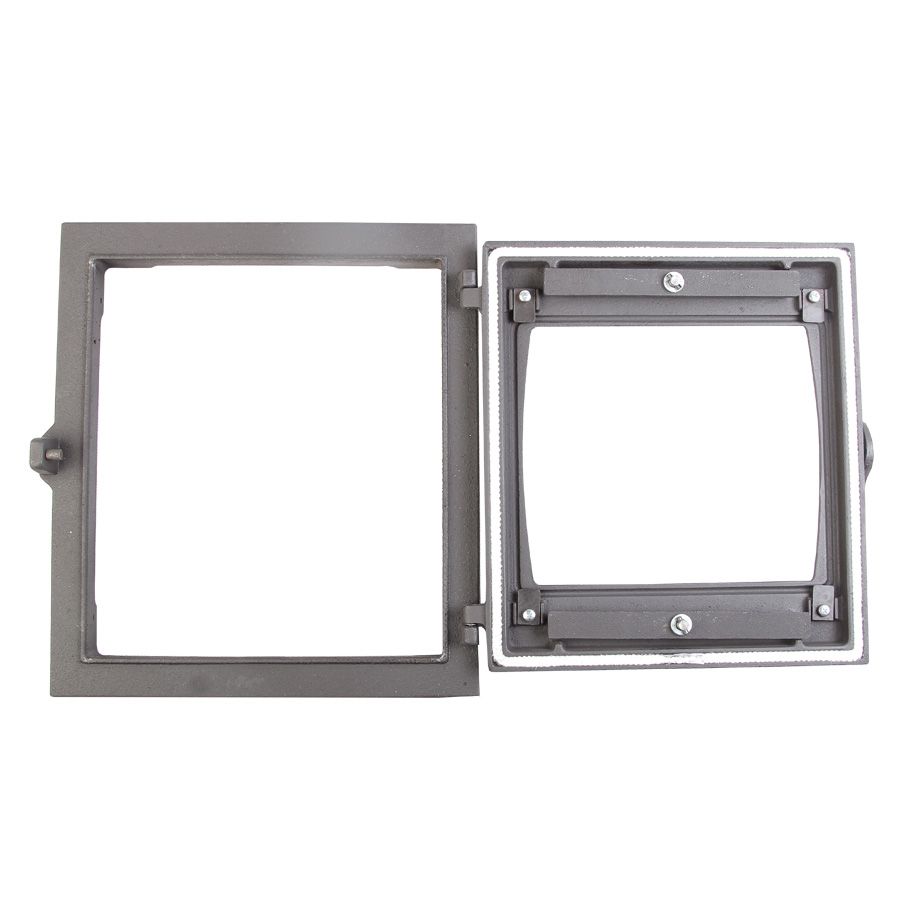 Дверка топочная герметичная ДТГ-8БС «Кижи-2» окрашенная со стеклом Размер под закладку: 290х325х35мм Габаритный размер: 340х370х130мм Средняя масса: 9,55кг