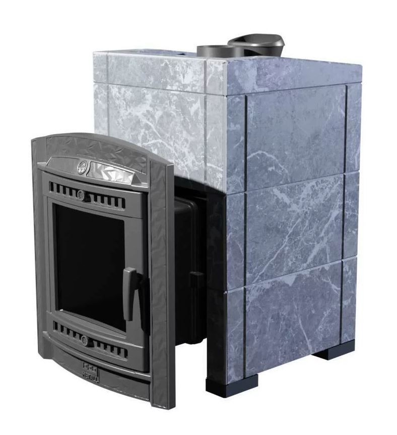 Модель печи в стильной и практичной облицовке из «Талькохлорита». За счет использования несущих брусков, состоящих из цельного камня, теплоёмкость печи увеличивается на 50%. Конструкция просто собирается и позволяет легко заменить любую деталь в случае необходимости. Цена и КПД такой облицовки отличаются оптимальным соотношением.