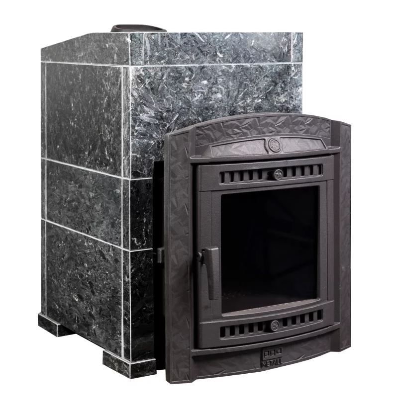 Модель печи в стильной и практичной облицовке из «Пироксенит». За счет использования несущих брусков, состоящих из цельного камня, теплоёмкость печи увеличивается на 50%. Конструкция просто собирается и позволяет легко заменить любую деталь в случае необходимости. Цена и КПД такой облицовки отличаются оптимальным соотношением.
