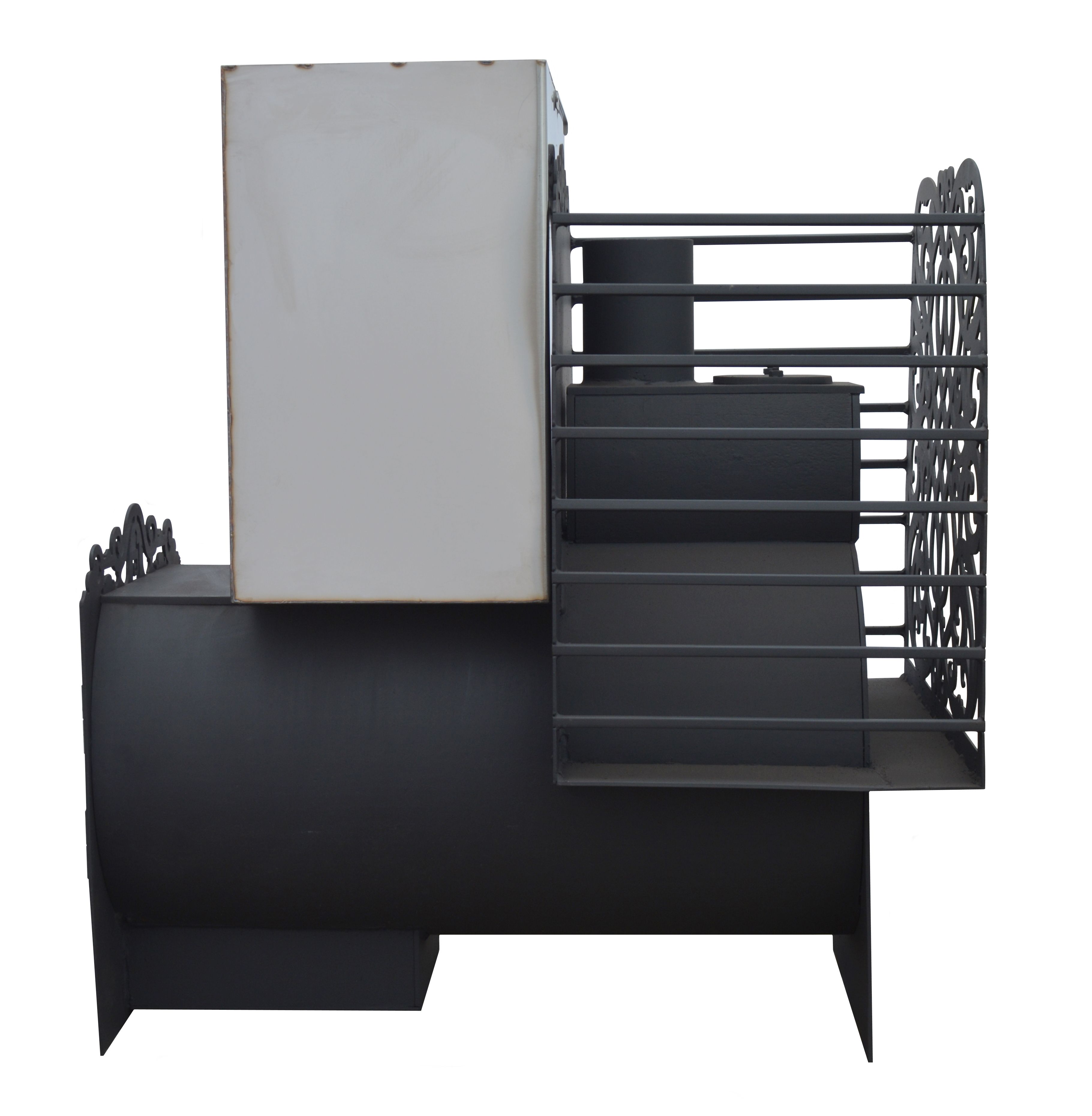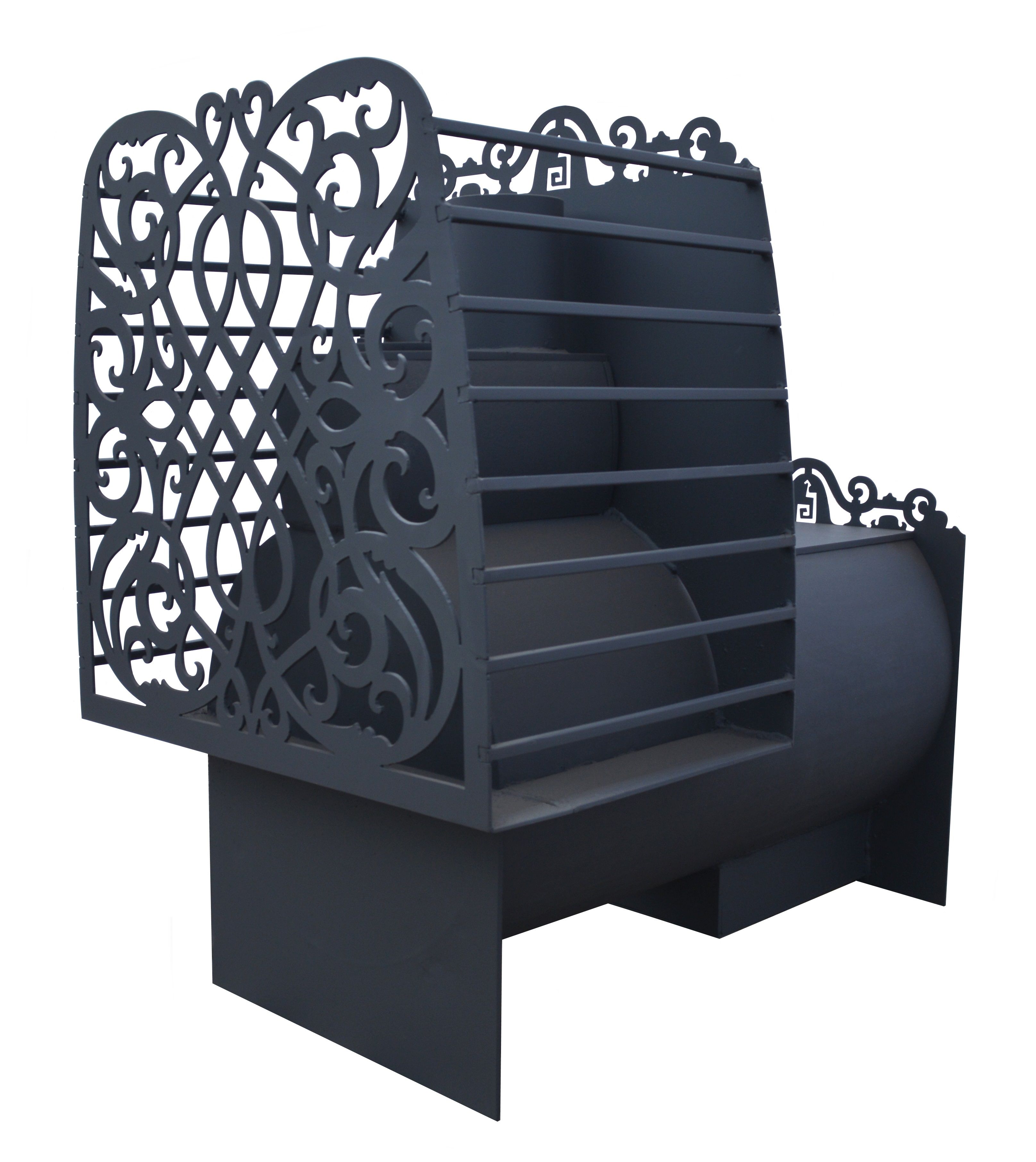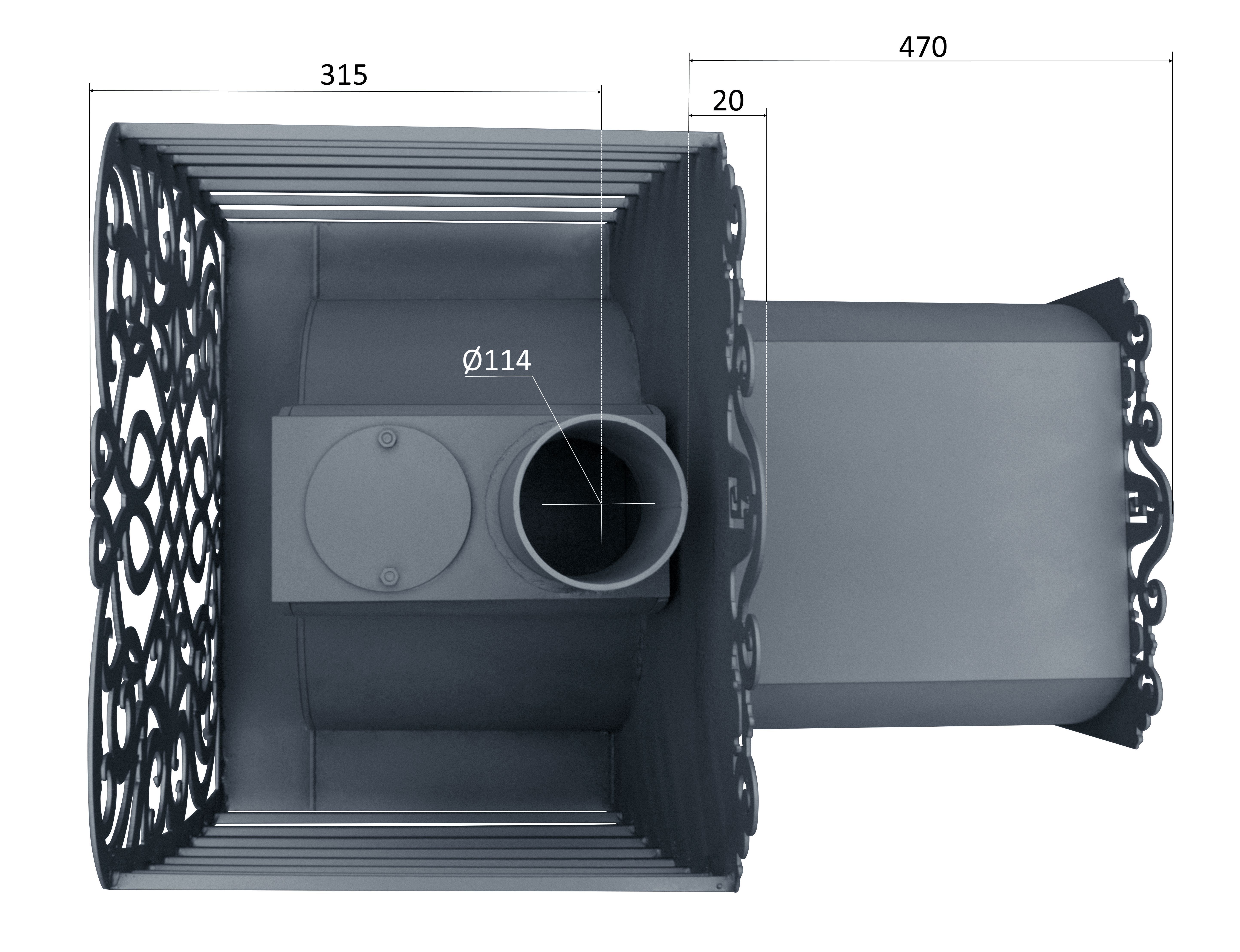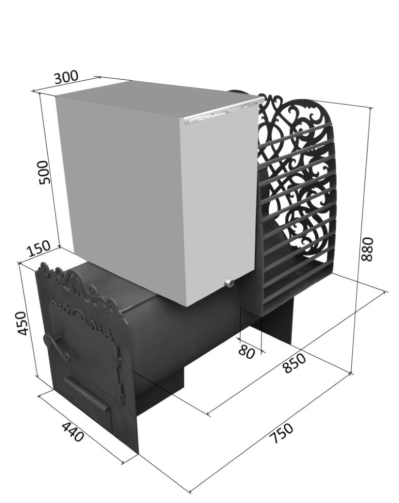 Печь "Горизонтальная-426" состоит из двух блоков: цельносварной топки-каменки и бака для горячей воды (бак приобретается отдельно). Печь изготовлена из листового металла толщиной 8 мм и 5 мм, трубы диаметром 426 мм толщиной 8 мм. Конструкция печи изготовлена таким образом, что пламя изначально прогревает дно бака для горячей воды и каменку, затем за счет отсекателя пламя следует к задней стенке топки, далее разворачивается, поступает в дымосборную камеру и уходит в дымоход. Бак для горячей воды нагревается до оптимальной температуры за счет установки его прямо над топкой печи, верхняя часть которой прогревается до максимальных температур.