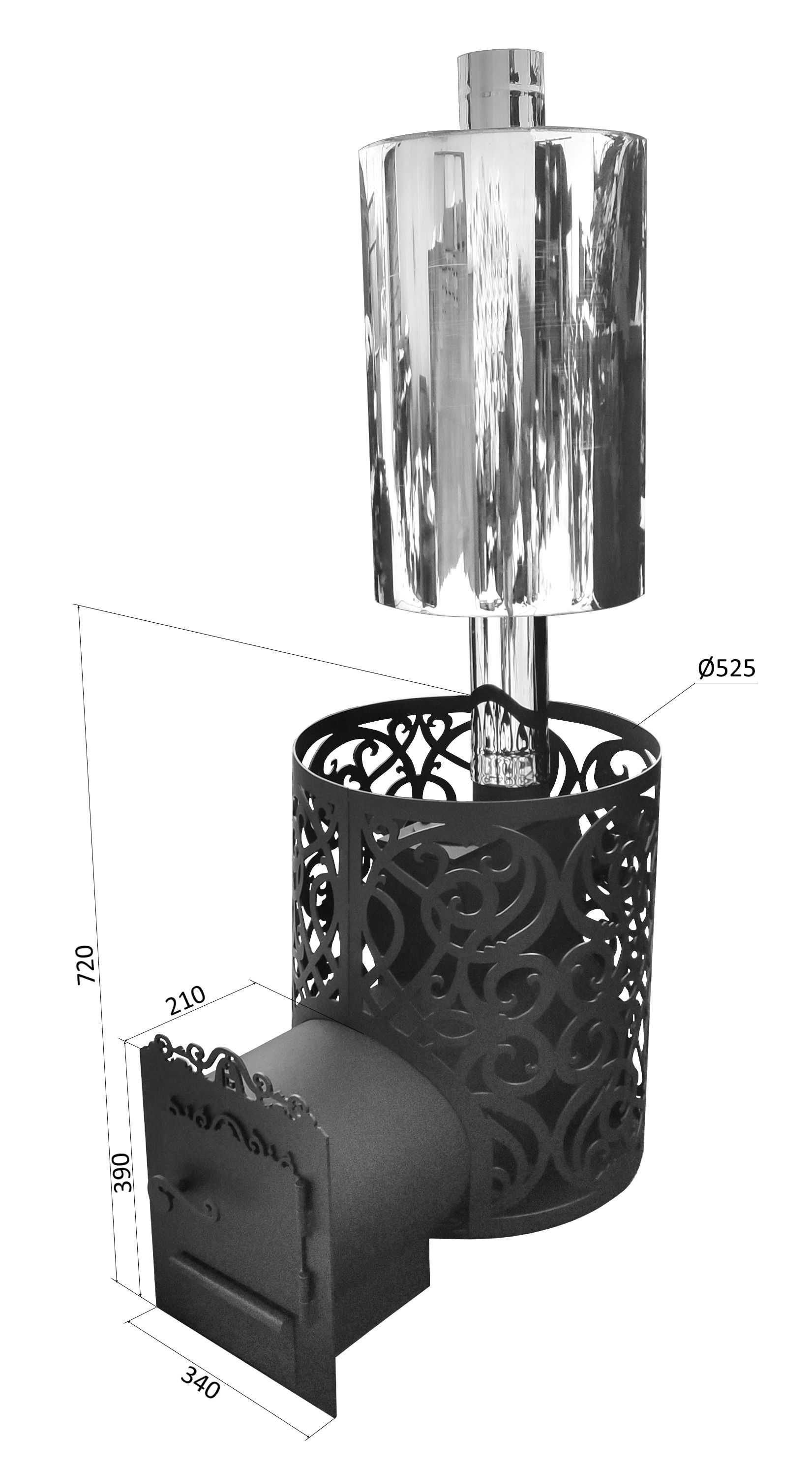 - Диаметр дымохода: 114 мм